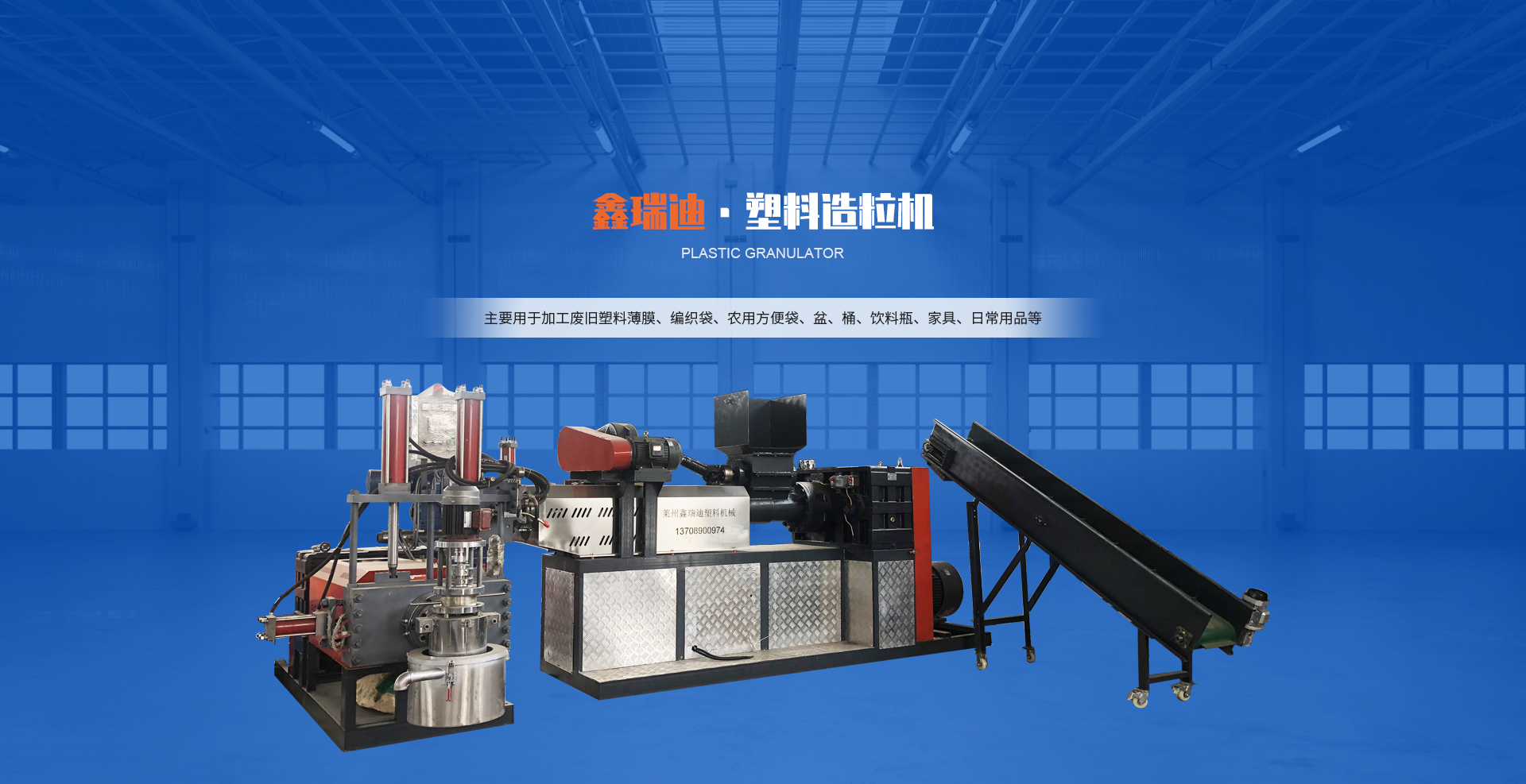主要用于加工廢舊塑料薄膜(工業包裝膜、農業地膜、大棚膜、啤酒包、手提袋等)、編織袋、農用方便袋、盆、桶、飲料瓶、家具、日常用品等,適用于大部分常見的廢舊塑料